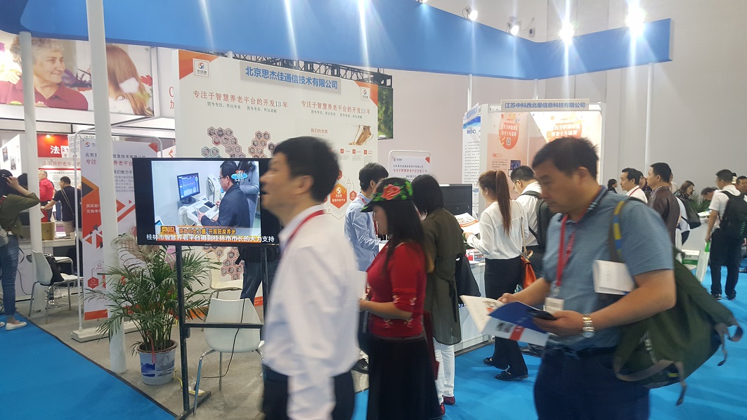 第七屆中國國際養老服務業博覽會開幕,杰佳通連續七年參加展覽,杰佳通智慧養老平臺每年都有新功能,新案例展現給廣大觀眾。