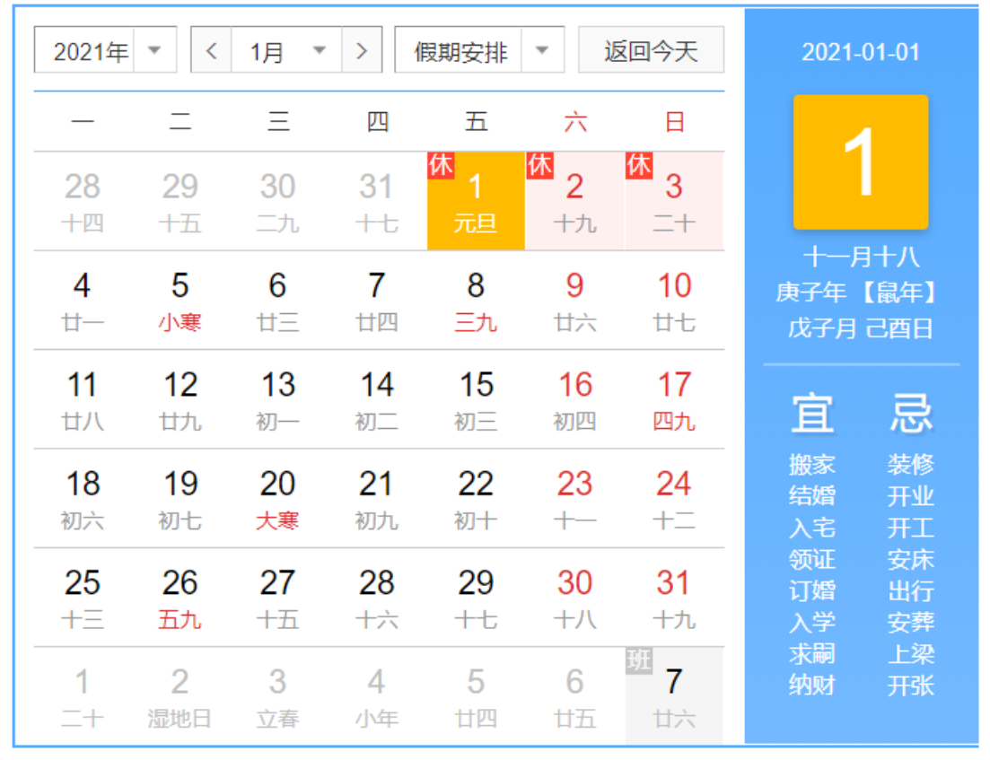 2021年1月1日至3日放假,共3天。1月4日上班,放假期間,客服正常工作,若有使用問題咨詢請在相應服務群中聯系工作人員。